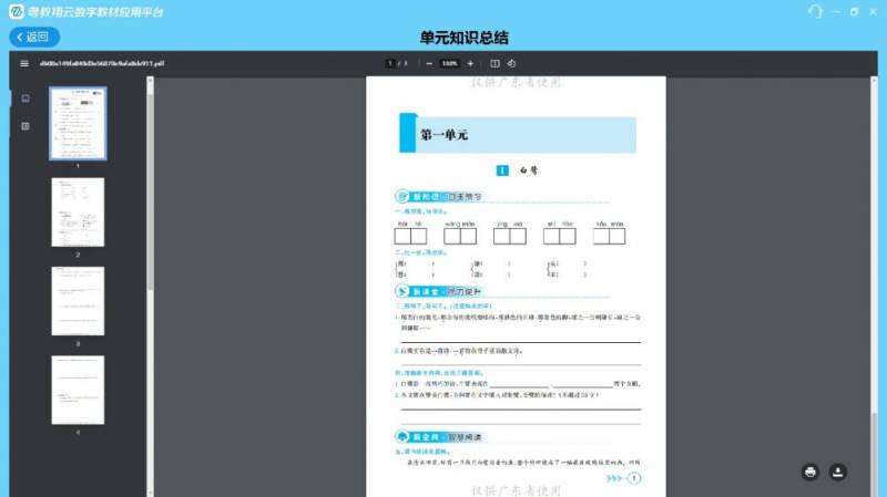 点击基础性作业资源的对应内容,可直接进入基础性作业的阅览界面进行浏览。