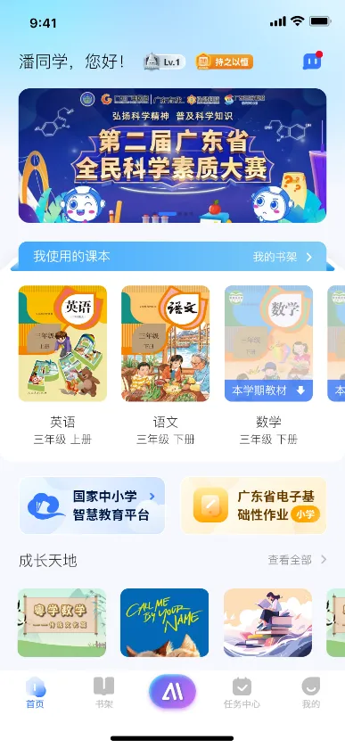 学生登录平台后,在首页点击“广东省电子基础性作业”入口。
