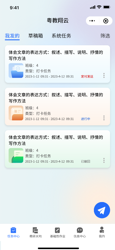 小程序端介绍:教师登录平台后,点击底部的“基础性作业”入口。
