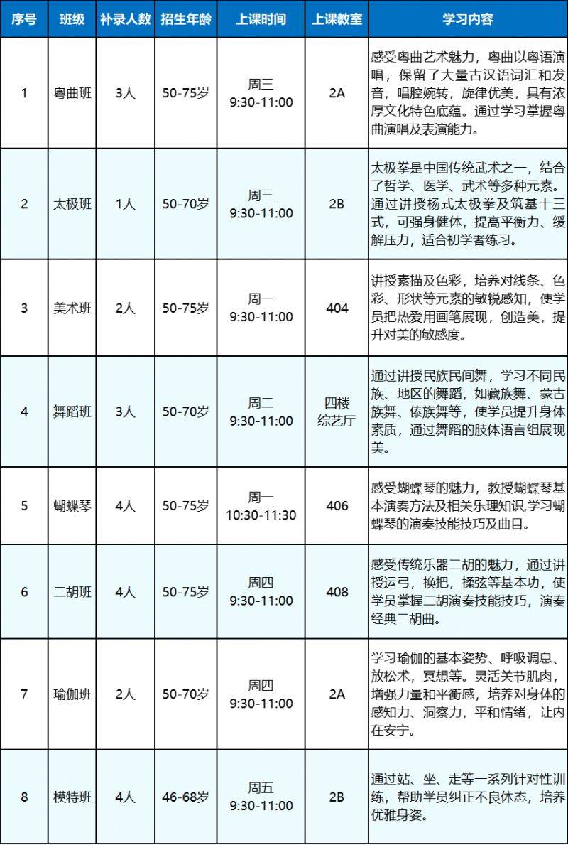 老年班秋季补招班级汇总表