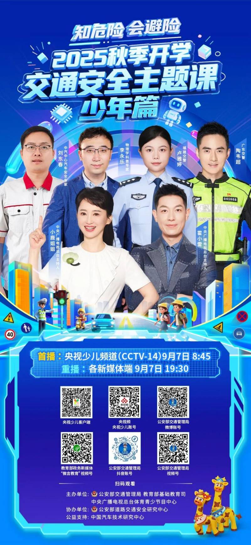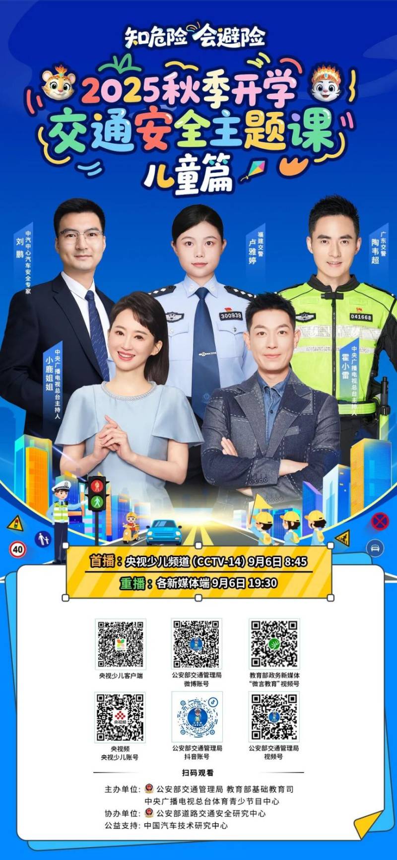 公安部交通管理局、教育部基础教育司、中央广播电视总台体育青少节目中心联合录制的“知危险 会避险”2025年秋季开学交通安全主题课如约和大家见面了。