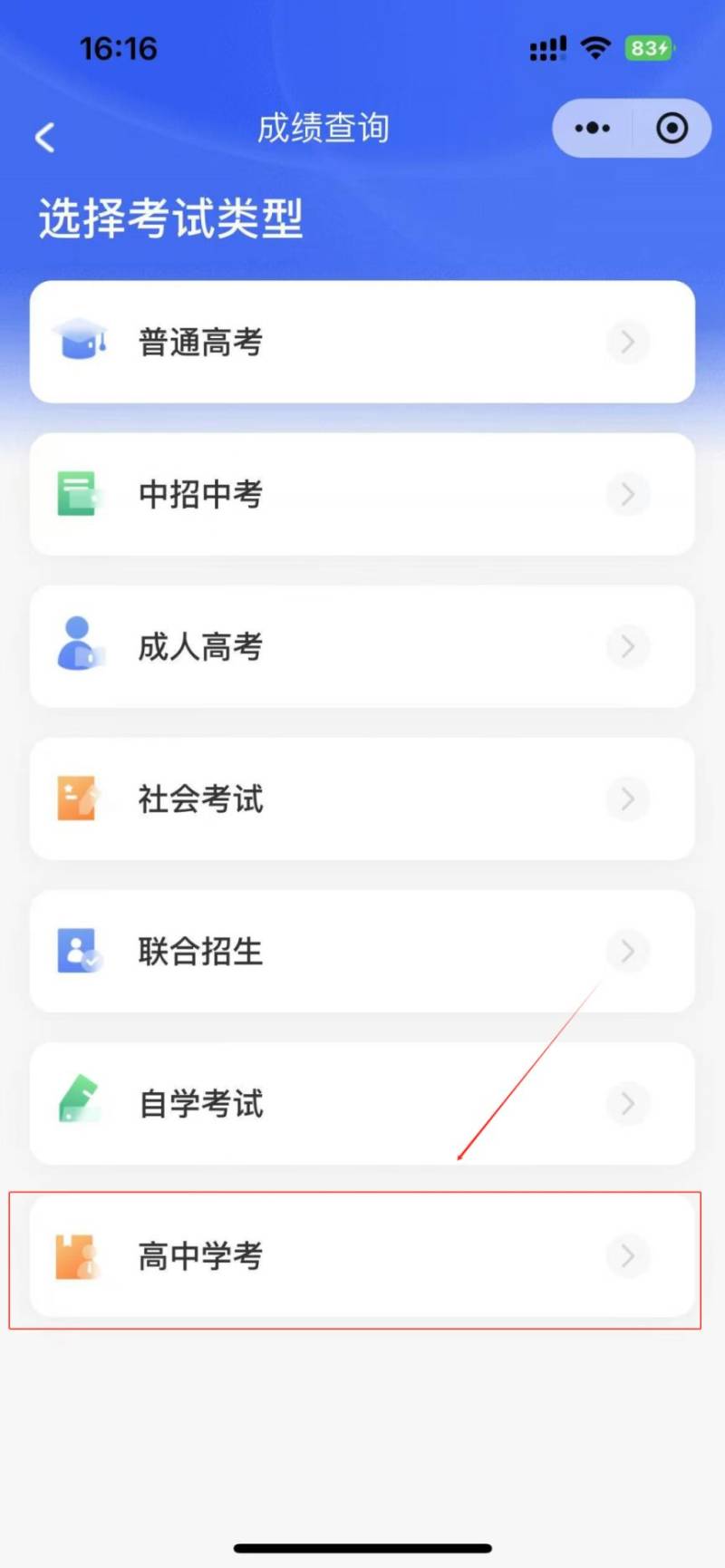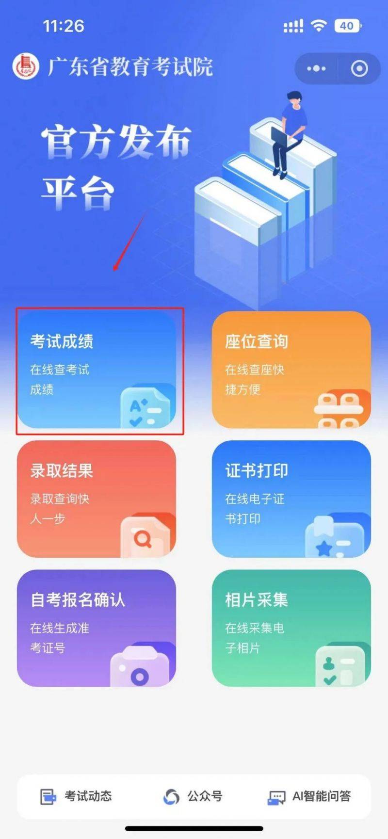 打开广东省教育考试院小程序,在首页找到“成绩查询”点击并进入;选择考试类型,点击“高中学考”即可进入查询界面(目前暂未开放),输入考生号、密码即可开始查分。