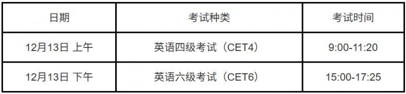 2025下半年英语四六级考试安排