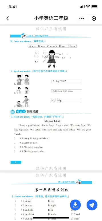 教师点击基础性作业资源的对应内容,可直接进入基础性作业的阅览界面,在阅览界面上可以直接下载、发送任务。