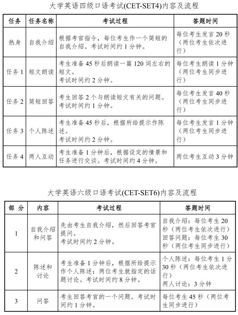 英语四级口试(CET-SET4)考试时间为11月22日,英语六级口试(CET-SET6)考试时间为11月23日。具体场次安排如下:
