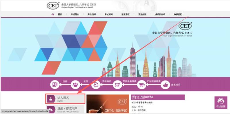 报名入口:CET全国网上报名系统(cet-bm.neea.edu.cn)