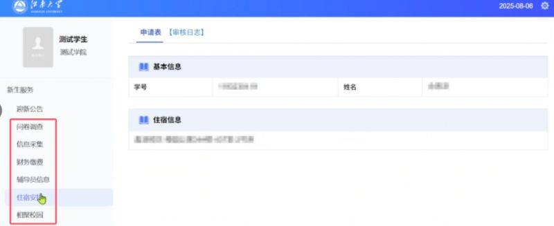 按照要求完成“信息采集”,查看“住宿安排”“辅导员信息”等。
