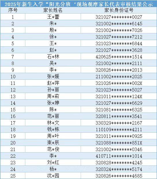 经后期审核与确认,《2025年新生入学“阳光分班”现场观摩家长代表审核结果公示》如下: