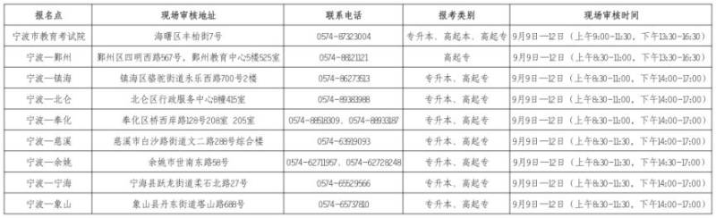 (3)宁波市教育考试院报名点现场审核时间为9月9日—12日,地点在海曙区丰柏街7号。周边无停车场地,请绿色出行。