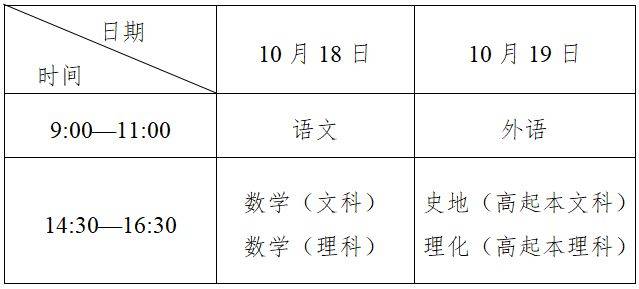 1.高起本、高起专考试时间表
