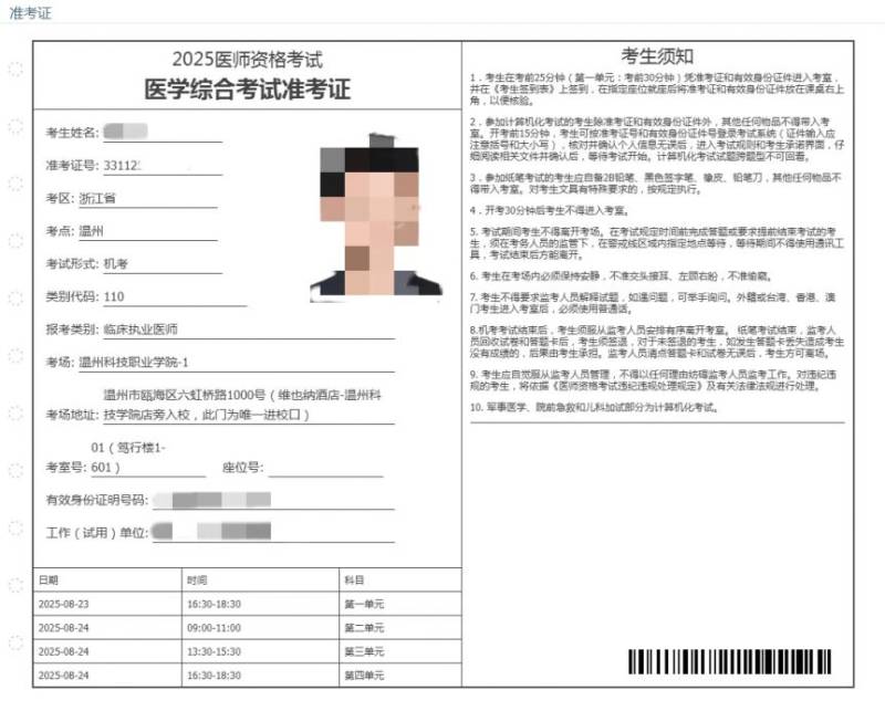 温馨提示:准考证上有相应的考试日期及时间、考场地址,请考生仔细查看,重点阅读《考生须知》。