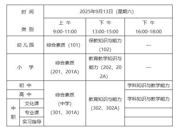 (一)初中、高中、中职文化课类别的 “心理健康教育”、“日语”、“俄语”专业,笔试科目为初、高中《综合素质》(代码:301)和《教育知识与能力》(代码:302),以上科目的学科知识与教学能力暂不进行笔试,在面试时一并考核。