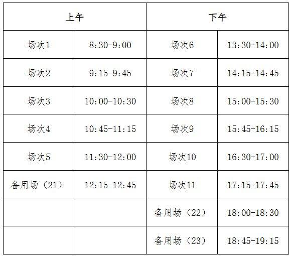 11月22日英语四级口试,11月23日英语六级口试,场次安排如下: