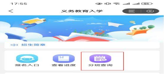 1.家长登录惠保定app或者小程序,选择区县,进入,选择分班查询