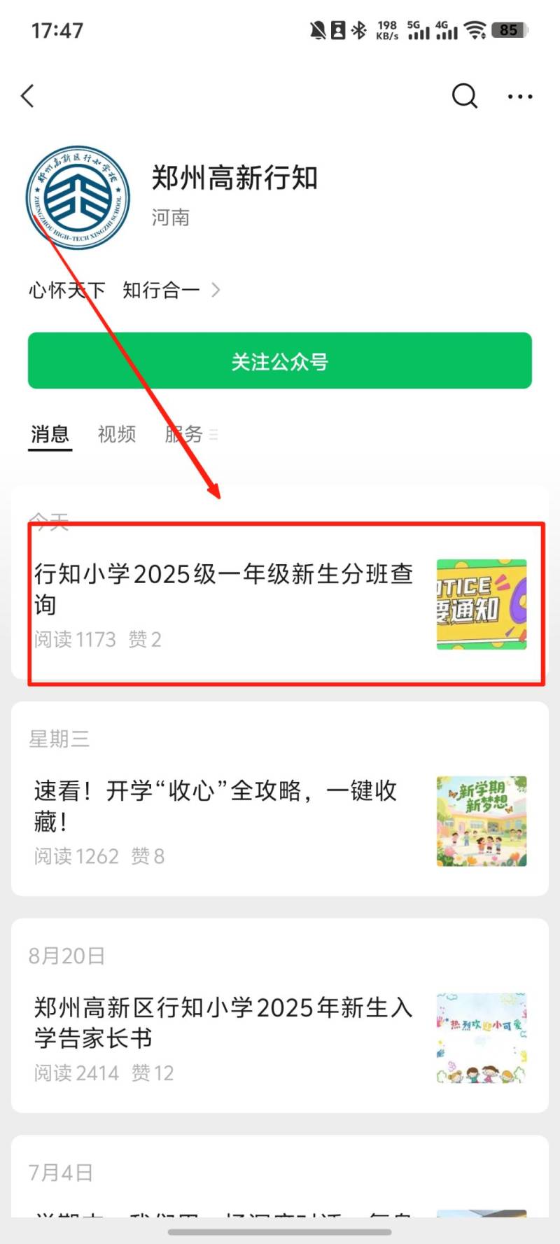 温馨提示:以下为小编收集整理的郑州部分小学分班结果查询指南。信息不断更新,人工收集难免会有遗漏,可以在微信搜一搜搜索xx小学(如郑州行知小学)关注其官方微信,查看是否有分班查询信息。