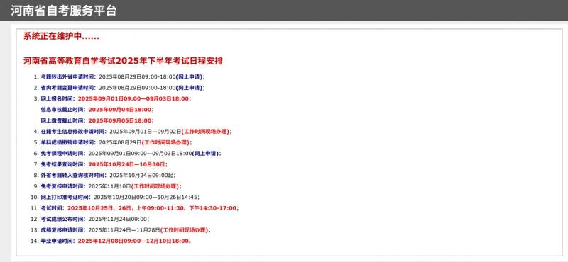 拓展:2025下半年河南自考报名安排