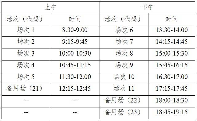 (2)CET-SET:开考科目为英语口语四级、六级。其中CET-SET4考试时间为11月22日(F253次),CET-SET6考试时间为11月23日(S254次),具体场次安排如下: