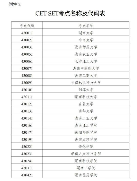 (2)CET-SET考点设置:全省共21个考点,详见附件2,未设口语考试考点的院校应做好宣传解释工作。