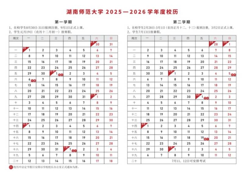 湖南师范大学2025-2026秋季学期校历