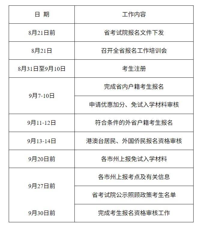 湖南省2025年成人高校招生考试报名工作进程安排表