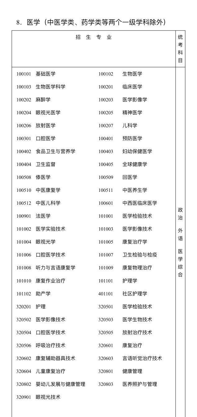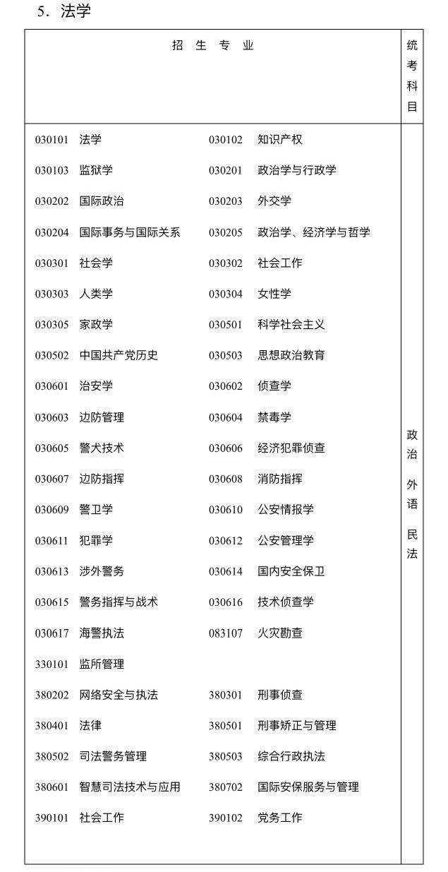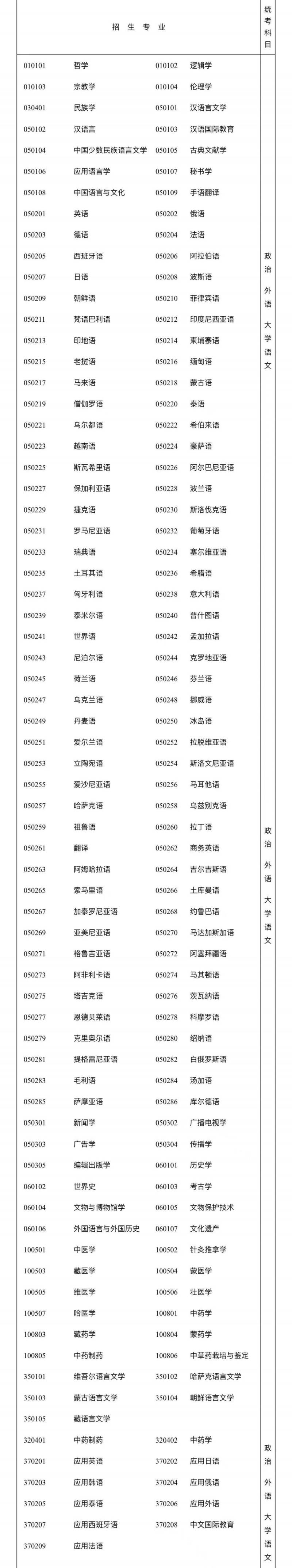 注:上述专科起点升本科招生专业所对应的考试科目转自教育部教学厅〔2017〕12号文件附件4《专科起点升本科招生专业与统一考试科目对照表》。
