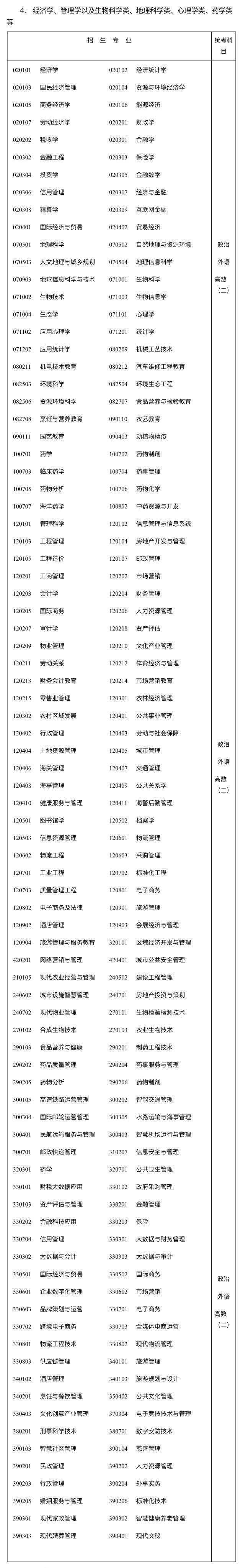 4.经济学、管理学以及生物科学类、地理科学类、心理学类、药学类等