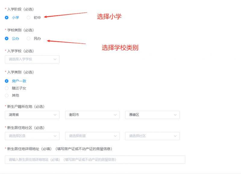衡阳市义务教育入学服务平台小学报名操作流程2025