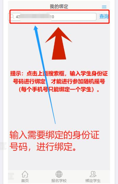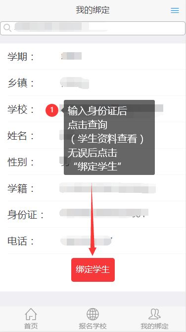 第三步,绑定学生,需要学生的身份证号才可以绑定