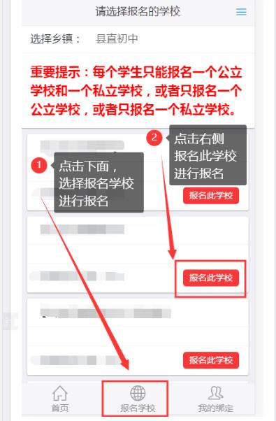 每个学生只能报名一个公立学校和一个民办学校,或者只报名一个公立学校,或者只报名一个民办学校。