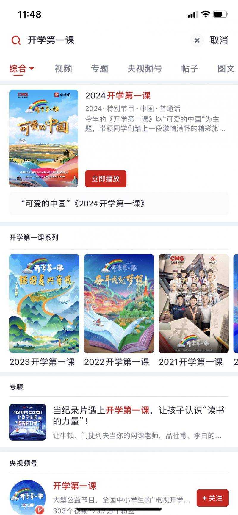 ps:打开上述App,搜索【开学第一课】或者【CCTV-1】观看直播。