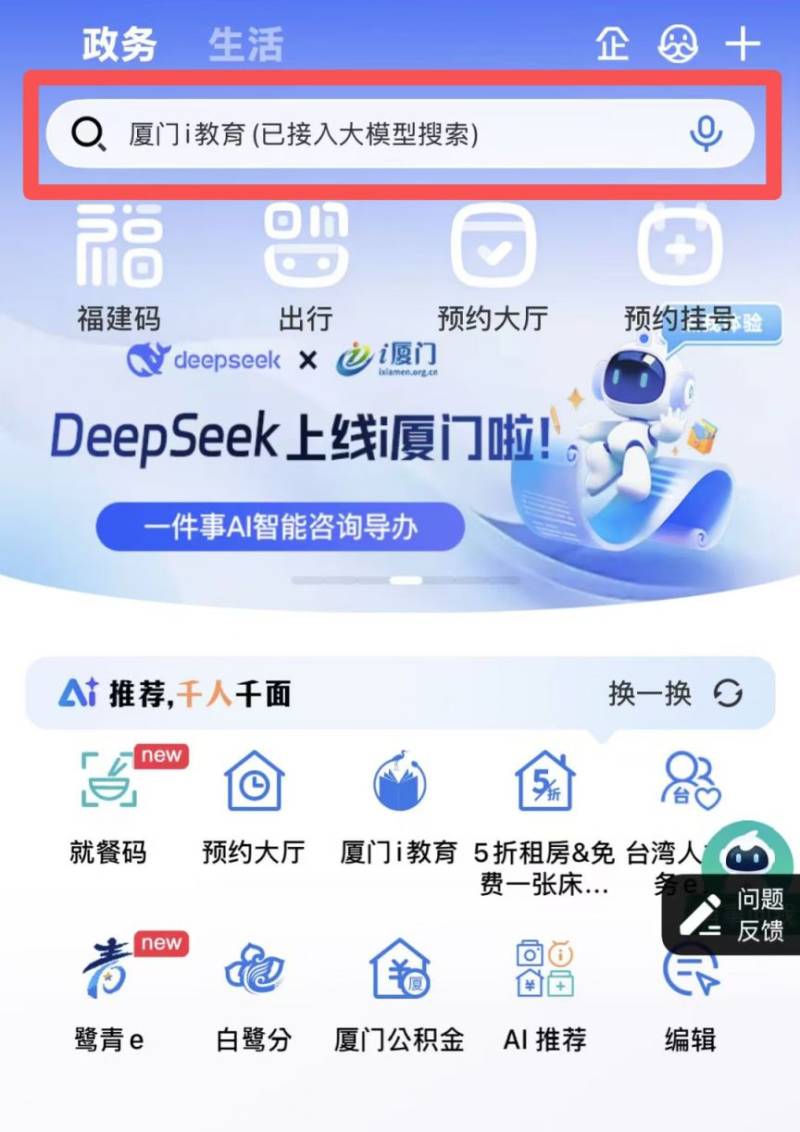 入口一:登录“ i厦门 ”APP / “厦门市民卡”APP,顶部搜索栏搜索关键词“课后服务”,进入课后服务专题页面。