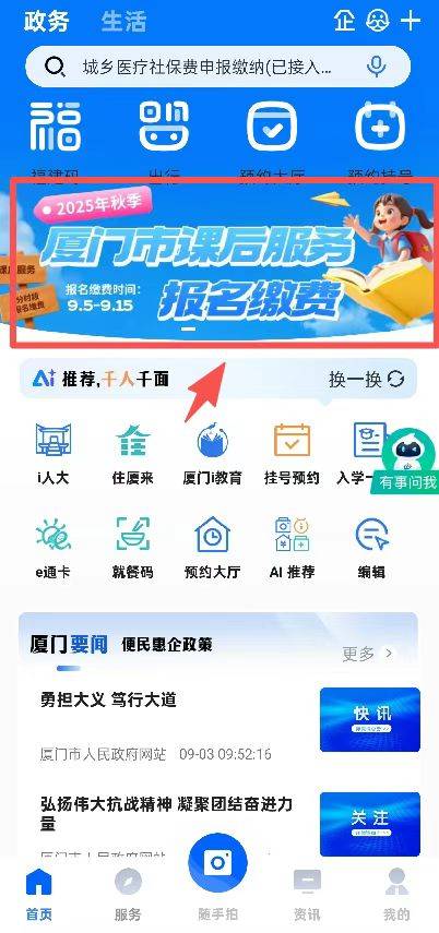 入口二:点击“i厦门”APP顶部轮播图,进入“课后服务”。