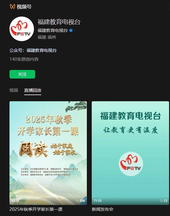 想要观看回放的,还是要通过福建省学校家庭教育指导服务中心视频号和福建教育电视台微信视频号观看。微信扫描下方二维码进入视频号。