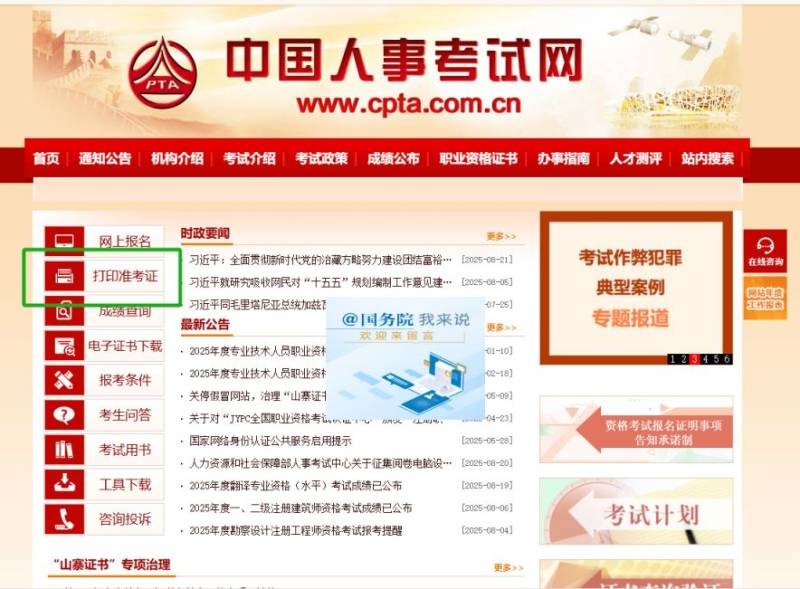 报名成功的考生请于2025年10月31日至11月9日登录中国人事考试网下载并打印准考证。
