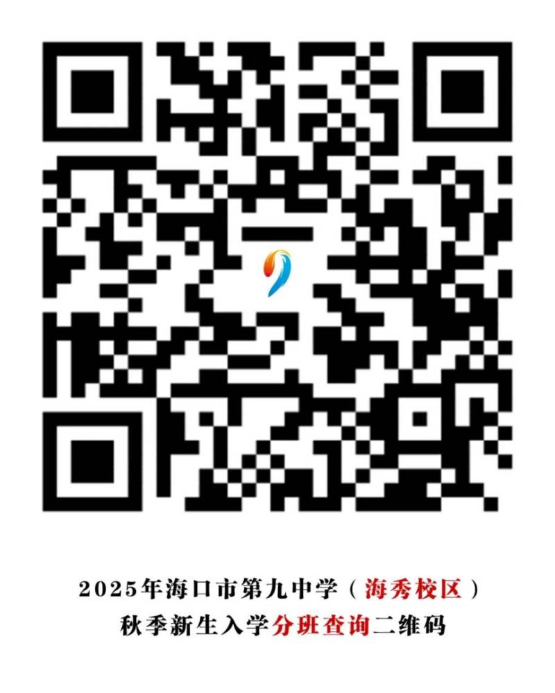 海口九中2025级新生分班查询二维码(海秀校区+江东校区)