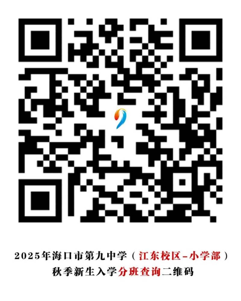 海口九中2025级新生分班查询二维码(含海秀校区、江东校区-初中部、江东校区-小学部)