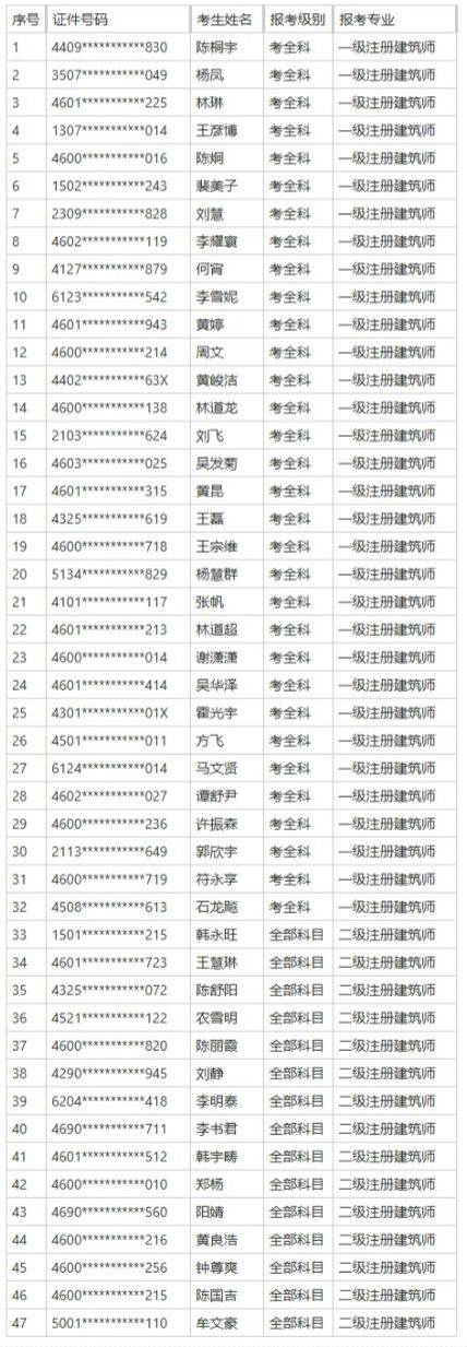 根据《人力资源社会保障部办公厅关于印发<专业技术人员职业资格考试考务工作规程>的通知》(人社厅发〔2021〕18号)等文件的规定和要求,现将我省2025年度一、二级注册建筑师资格考试成绩合格人员予以公示,共47人(名单附后)。