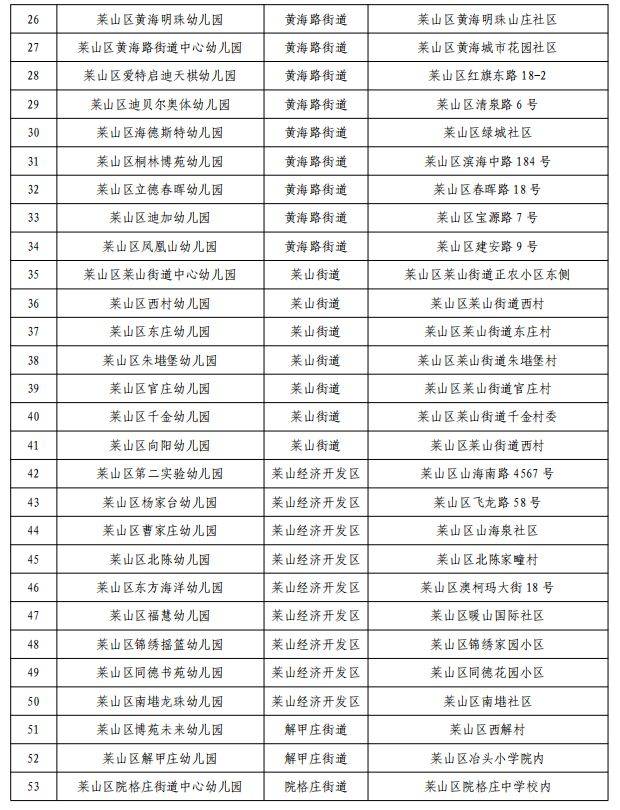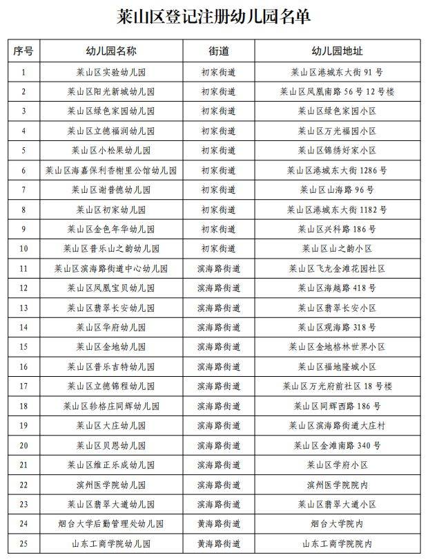 2025年烟台莱山区登记注册幼儿园名单