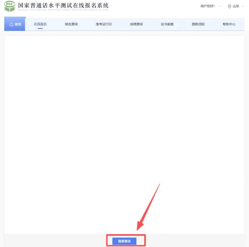 1.考生登录“国家普通话水平测试在线报名系统”(https://bm.cltt.org/#/index),首次登录请先注册,登录后点击“报名入口”—“山东”—“我要报名”——“淄博市普通话培训测试中心”,根据个人实际情况选择测试时间、考点报名,具体考试时间以准考证为准。