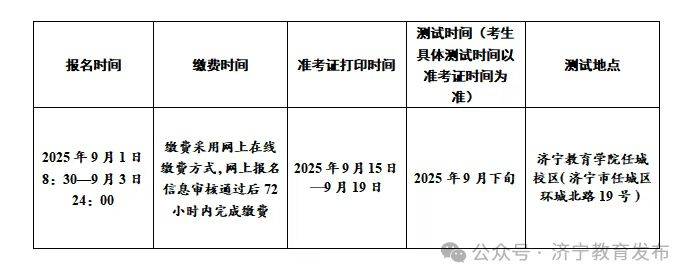 济宁市2025年9月份面向社会人员的普通话水平测试具体安排如下: