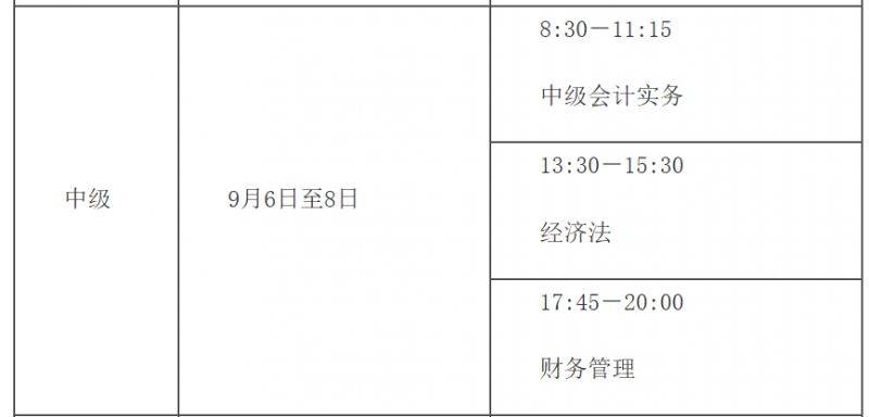 (一)中级会计资格考试于2025年9月6日至8日举行,共3个批次,各科目具体考试时间如下: