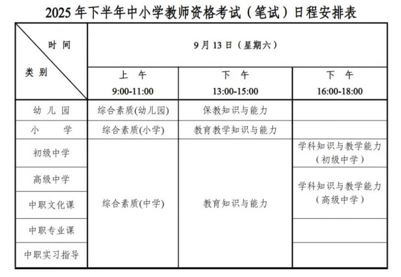 2025年下半年中小学教师资格考试(笔试)将于9月13日进行,为保障广大考生顺利参加考试,现将有关事项提示如下: