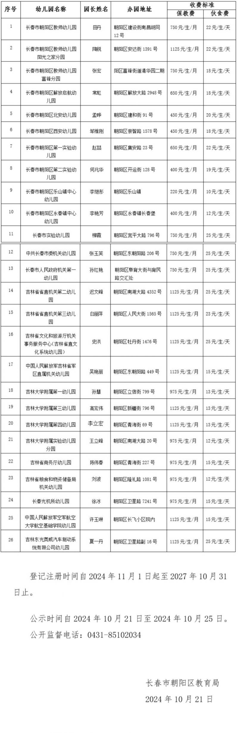 长春市朝阳区公办幼儿园名单