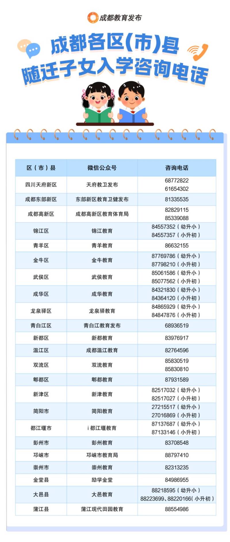 成都市户籍跨行政区域居住就业人员随迁子女可采用“非积分申请”。