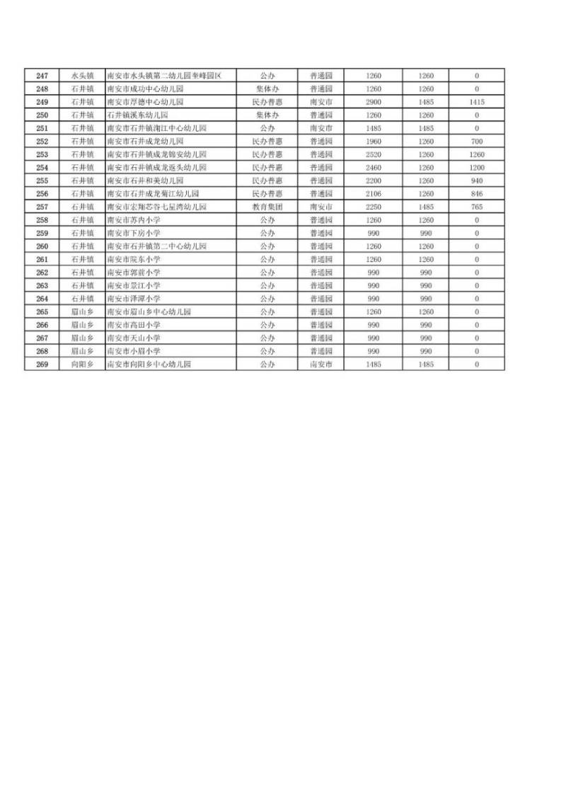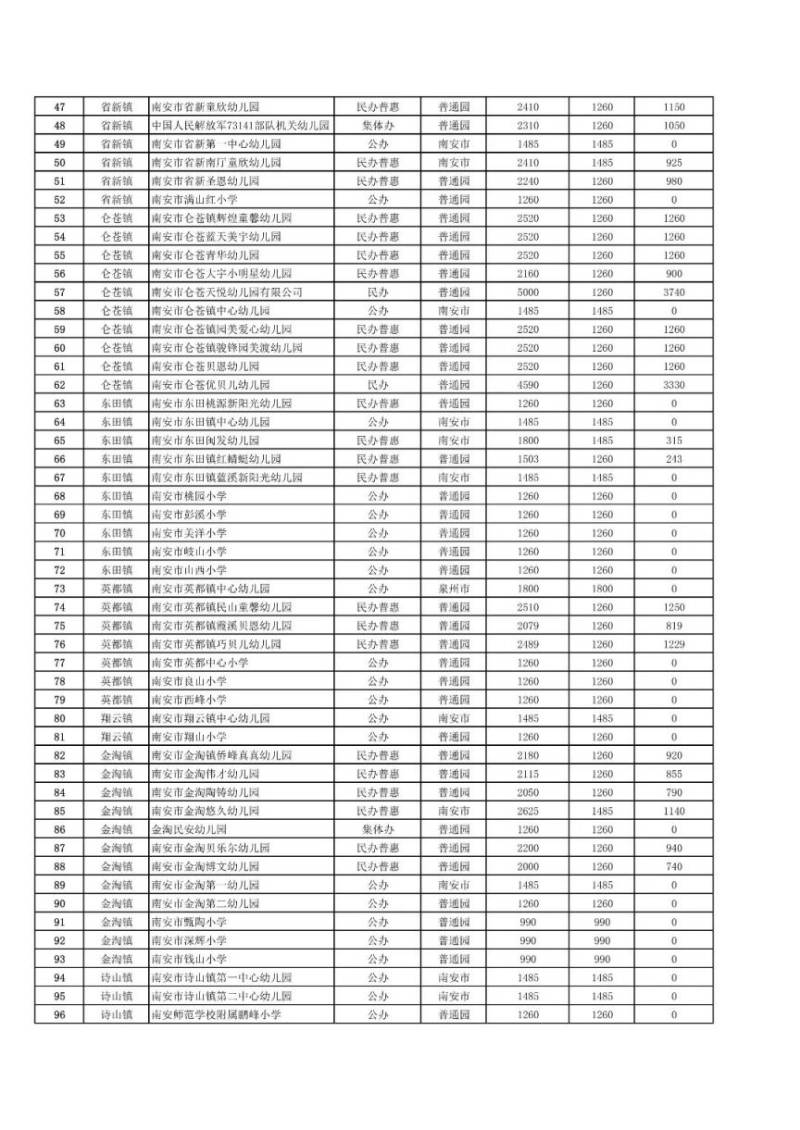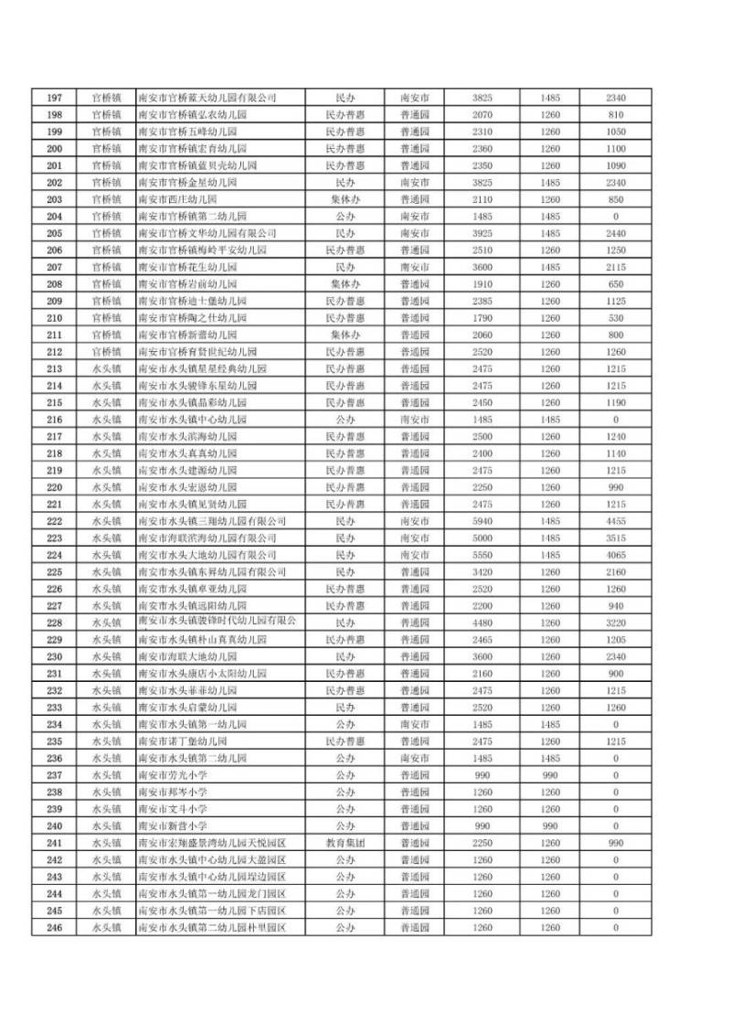 南安市幼儿园减免保教费标准