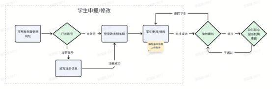 2.申报流程:学生申报->学校审核->公共就业服务机构审核