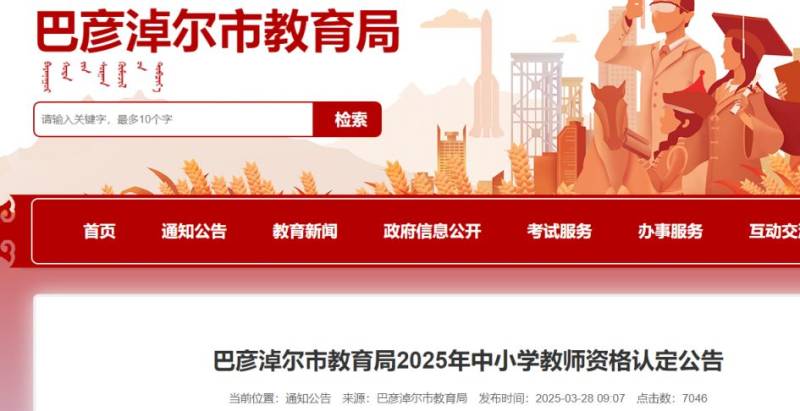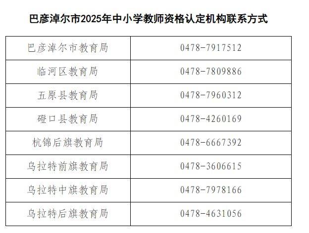 巴彦淖尔市教育局2025年中小学教师资格认定公告