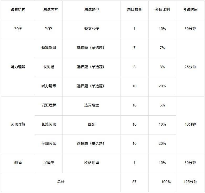英语四级和六级考核内容如下: