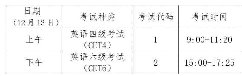 CET考试科目及考试时间