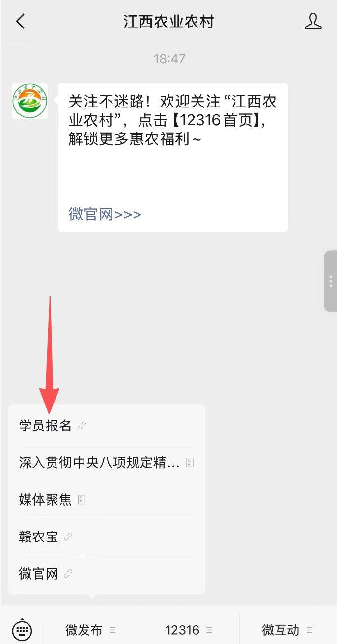 1.微信搜索“江西农业农村”,关注“江西农业农村”微信公众号